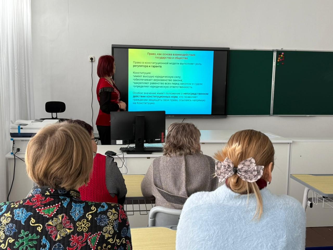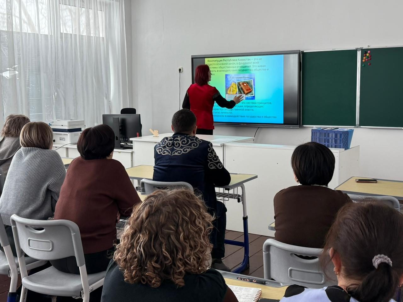 Семинар-диалог «Қазақстан Республикасының өзекті конституциялық моделі: мемлекет, қоғам және құқықтың арақатынасы» мұғалімдердің құқықтық сауаттылығын және кәсіби құзыреттілігін арттыру мақсатында мектеп педагогтарымен өткізілді. Іс-шара барысында конституциялық реформалардың негізгі аспектілері, азаматтық қоғамның рөлі және қазіргі заманғы мемлекетті дамытудағы құқықтың маңызы қарастырылды. Қатысушылар өзекті мәселелерді талқылап, алынған білімді білім беру қызметінде практикалық тұрғыда қолдану жөнінде пікір алмасты.